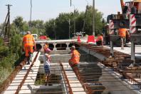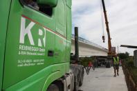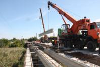 На минулому тижні закінчився монтаж залізобетонних балок на всіх підготовлених прольотах. Усі балки вже покладені. Монтаж здійснювався двома автокранами синхронно з берегів річки. Довжина однієї балки складє майже 17 метрів, вага – 13 тонн.