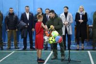 У свою чергу, діти підготували гостям показові виступи зі спортивної гімнастики й ушу та подарували Володимиру Зеленському прапор України.