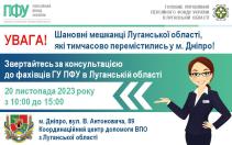 Консультація спеціаліста Головного управління Пенсійного фонду України в Луганській області відбудеться 20 листопада з 10:00 до 15:00.