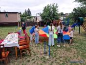 Із цим проєктом Микола Миколайович одразу й познайомив. У дворі будинку десятка півтора дітей під керівництвом молодої жінки грали в якусь дуже рухливу гру, жваво міняючи позиції під різнокольоровим тентом.