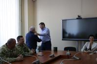У свою чергу, голова Спортивного комітету, Заслужений працівник фізичної культури і спорту України Микола Подоляк розповів про спортивні досягнення спортсменів-прикордонників та їх роботу. Він зазначив, що мета поїздки делегації до Східної України – миротворча.
