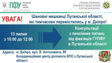 Черговий прийом наших переселенців спеціалістами ГУ ПФУ в Луганській області відбудеться 13 липня з 10:00 до 12:00 у Координаційному центрі допомоги ВПО з Луганської області за адресою: м. Дніпро, вул. В. Антоновича, буд. 89.
