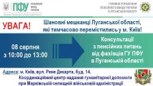 У вівторок, 8 серпня, внутрішньо переміщених осіб з Луганської області, які тимчасово мешкають в Києві, прийматимуть спеціалісти ГУ ПФУ в Луганській області.